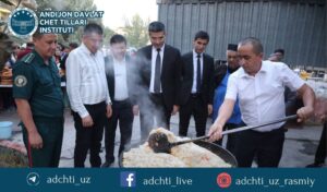 Tashrif davomida kechki ovqat uchun o’zbek xalqining sevimli taomi palov tayyorlanib, talaba-yoshlarga tarqatildi. Kechki ovqatdan so’ng esa TTJning yozgi amfiteatrida «Bir bo’lsak – yagona xalqmiz, Birlashsak – Vatanmiz!» shiori ostida katta bayram tadbiri tashkil qilindi.