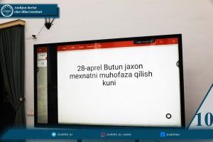 Andijon davlat chet tillari institutida 28-aprel — “Butunjahon mehnatni muhofaza qilish kuni” munosabati bilan davra suhbati o’tkazildi. Yig‘ilishga institut Fuqaro va mehnat muhofazasi bo‘limi boshlig‘i A.Qipchaqov raislik qildi.