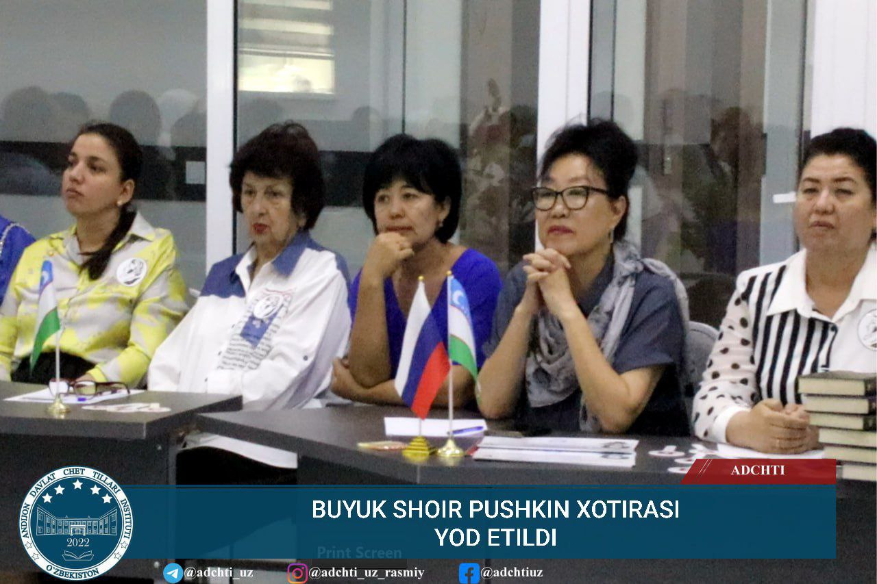 2025-yil 4-iyun kuni Andijon davlat chet tillari instituti Roman-german va slavyan tillari fakultetida rus adabiy tilining asoschisi, jahon she’riyati durdonalaridan biri — Aleksandr Sergeyevich Pushkinning 226 yilligiga bag‘ishlangan “She’riyat va ma’naviyat oqshomi” tashkil etildi.
