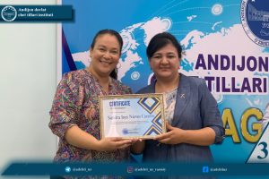 Marosim davomida o‘quv kursini muvaffaqiyatli yakunlagan ishtirokchilarga sertifikatlar topshirildi, xorijiy mutaxassislarga esa institut nomidan Tashakkurnomalar va esdalik sovg‘alari taqdim etildi.