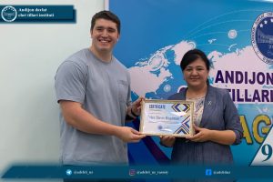 Dastur yakunida sertifikat topshirish marosimi o‘tkazildi. Marosimda Ingliz filologiyasi, o‘qitish metodikasi va tarjimashunoslik fakulteti Gid hamrohligi, madaniyatlararo muloqot va tarjimashunoslik kafedrasi mudiri M.Qosimova ishtirok etdi. U o‘z chiqishida ENGAGE – 2025 dasturining institut ta’lim sifatini oshirishdagi o‘rni, xalqaro tajribaning ahamiyati hamda talaba va ustozlar o‘rtasida uyg‘un muloqot muhitini shakllantirishdagi hissasi haqida to‘xtaldi.