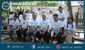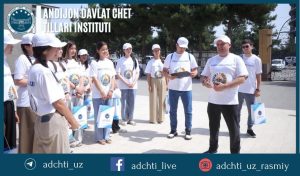 Andijon viloyatidagi barcha davlat oliy ta’lim muassasalarining faol talabalari uchun «Dolzarb 90 kunlik» loyihasi doirasida Andijon davlat chet tillari institutining Xonobod shahrida joylashgan “Turizm laboratoriyasi” hududida uch kunlik oromgoh tashkil etildi.