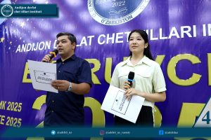 2024–2025-o‘quv yili yakuni munosabati bilan Andijon davlat chet tillari institutida diplom topshirish marosimlari davom etmoqda. Bugun Ingliz tili va adabiyoti fakultetining bakalavriat bosqichi bitiruvchilari uchun alohida diplom topshirish marosimi tashkil qilindi.