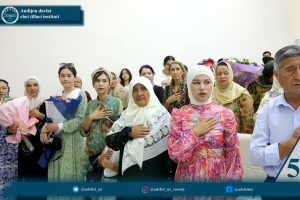 Shuningdek, tadbir davomida institut rektori, filologiya fanlari doktori, professor Dilshodbek Abduvahidovich Rustamovning bitiruvchilar uchun yo‘llagan samimiy tabrigini o‘qib eshittirdi. Tabrikda yoshlarga kelajak faoliyatlarida ulkan muvaffaqiyatlar, mustahkam iroda, fidoyilik va Vatanga sadoqat tilab, ularning zamonaviy bilimlar, xorijiy tillar va madaniyatlar asosida xalqaro miqyosda raqobatbardosh kadrlar bo‘lib yetishayotganliklari faxr bilan ta’kidlandi.