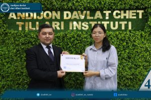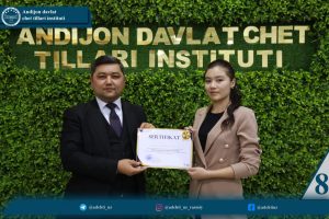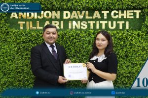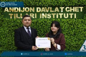 Workshop yakunida barcha ishtirokchilarga Andijon davlat chet tillari instituti rektori Dilshodbek Abduvahidovich Rustamov tomonidan imzolangan maxsus sertifikatlar tantanali ravishda topshirildi.