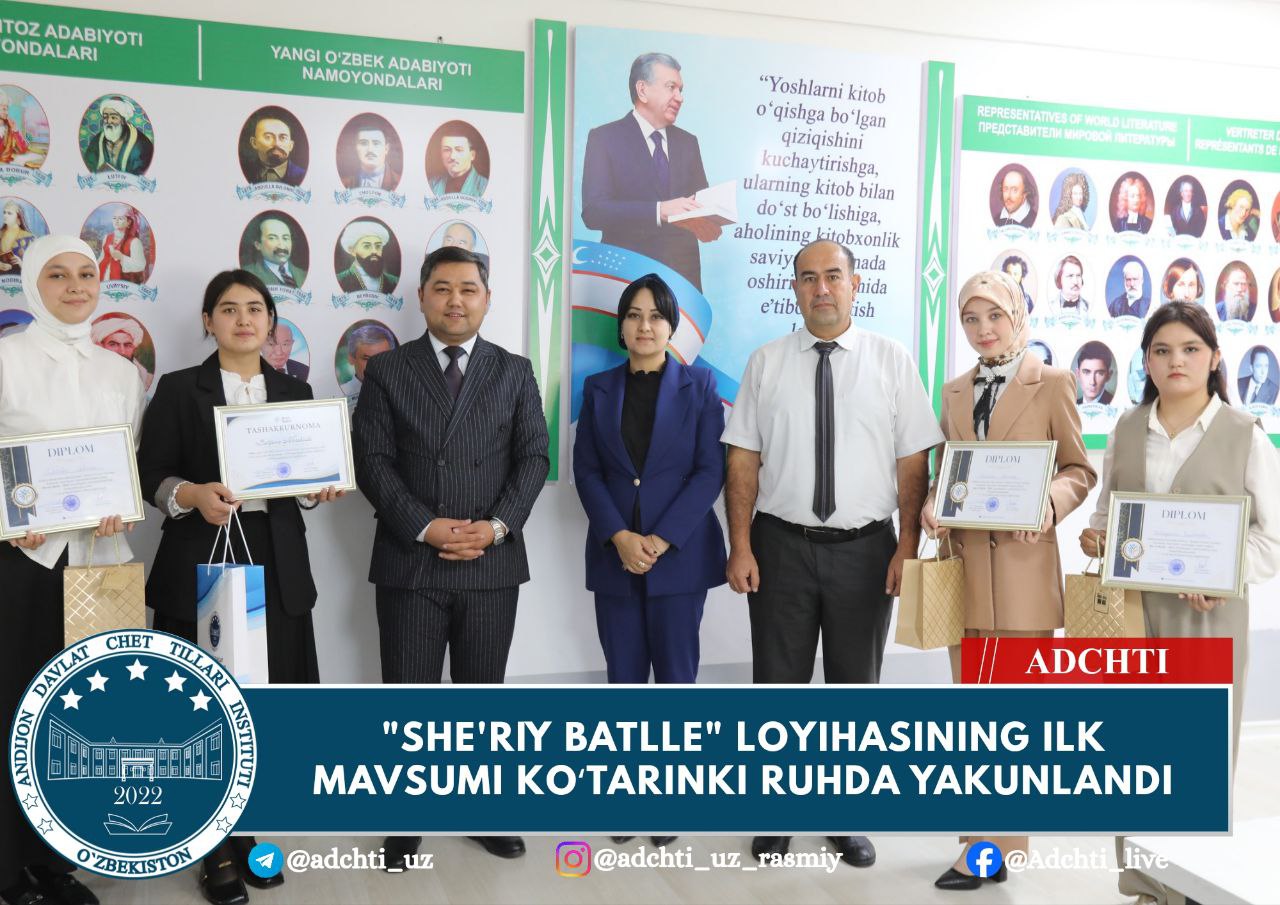 Andijon davlat chet tillari institutida “She’riy battle” loyihasining birinchi mavsumi o‘z yakuniga yetdi.