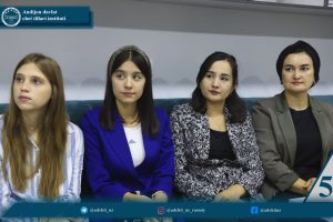 Andijon davlat chet tillari instituti rektori Dilshodbek Abduvahidovich Rustamov Ingliz tili va adabiyoti fakulteti Ingliz tili va adabiyoti kafedrasi professor-o‘qituvchilari bilan uchrashuv o‘tkazdi. Unda ta’lim-tarbiya jarayonini sifat jihatidan yangi bosqichga olib chiqish, professor-o‘qituvchilarning ilmiy salohiyatini yanada yuksaltirish, talabalarni ilmiy faoliyatga keng jalb etish, shuningdek, zamonaviy ta’lim tizimida muhim o‘rin tutuvchi DUAL ta’limni samarali joriy etish masalalari atroflicha muhokama qilindi.