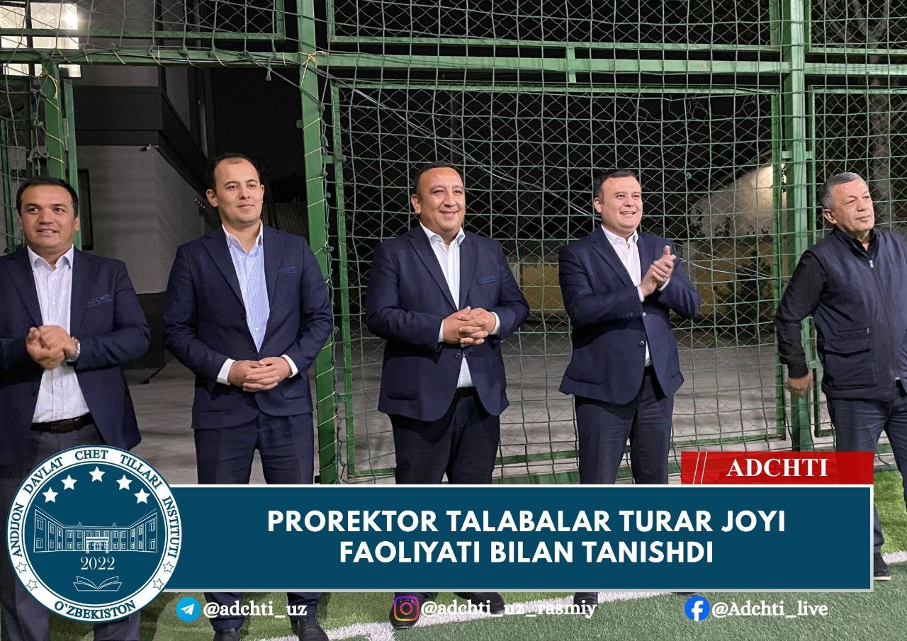 Tashrif davomida prorektor talabalar istiqomat qilayotgan xonalarni, yaratilgan sharoitlarni va olib borilayotgan sport toʻgaraklari faoliyatini koʻzdan kechirdi. Shuningdek, u oshxonadagi gigiyenik va maishiy sharoitlar bilan tanishib, u yerdagi talabalar bilan samimiy suhbatlashdi.