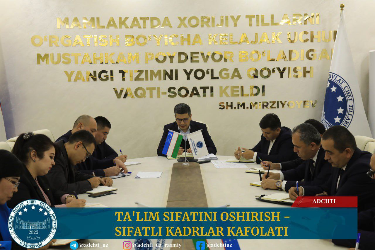 Bugun Andijon davlat chet tillari institutida rektor Dilshodbek Abduvahidovich Rustamov raisligida ta’lim sifatini oshirish masalalariga bag‘ishlangan muhim yig‘ilish o‘tkazildi.