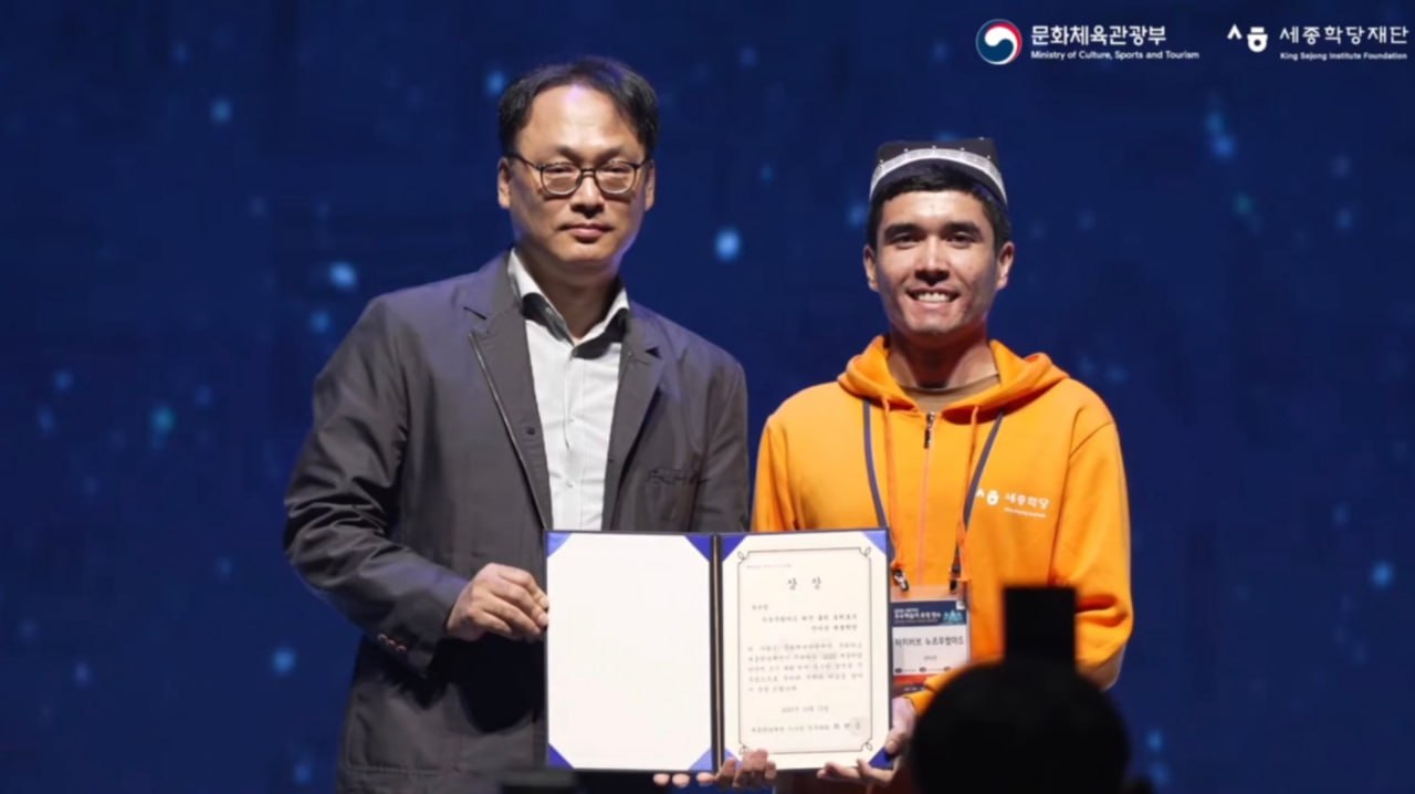 Qirol Sejong Institutlari jamg‘armasining taklifiga binoan hozirda Janubiy Koreyada bo‘lib turgan Andijon davlat chet tillari instituti talabasi — Tohirov Nurmuhammad yozish bo‘yicha xalqaro saralash musobaqasida faxrli mukofotga sazovor bo‘ldi!