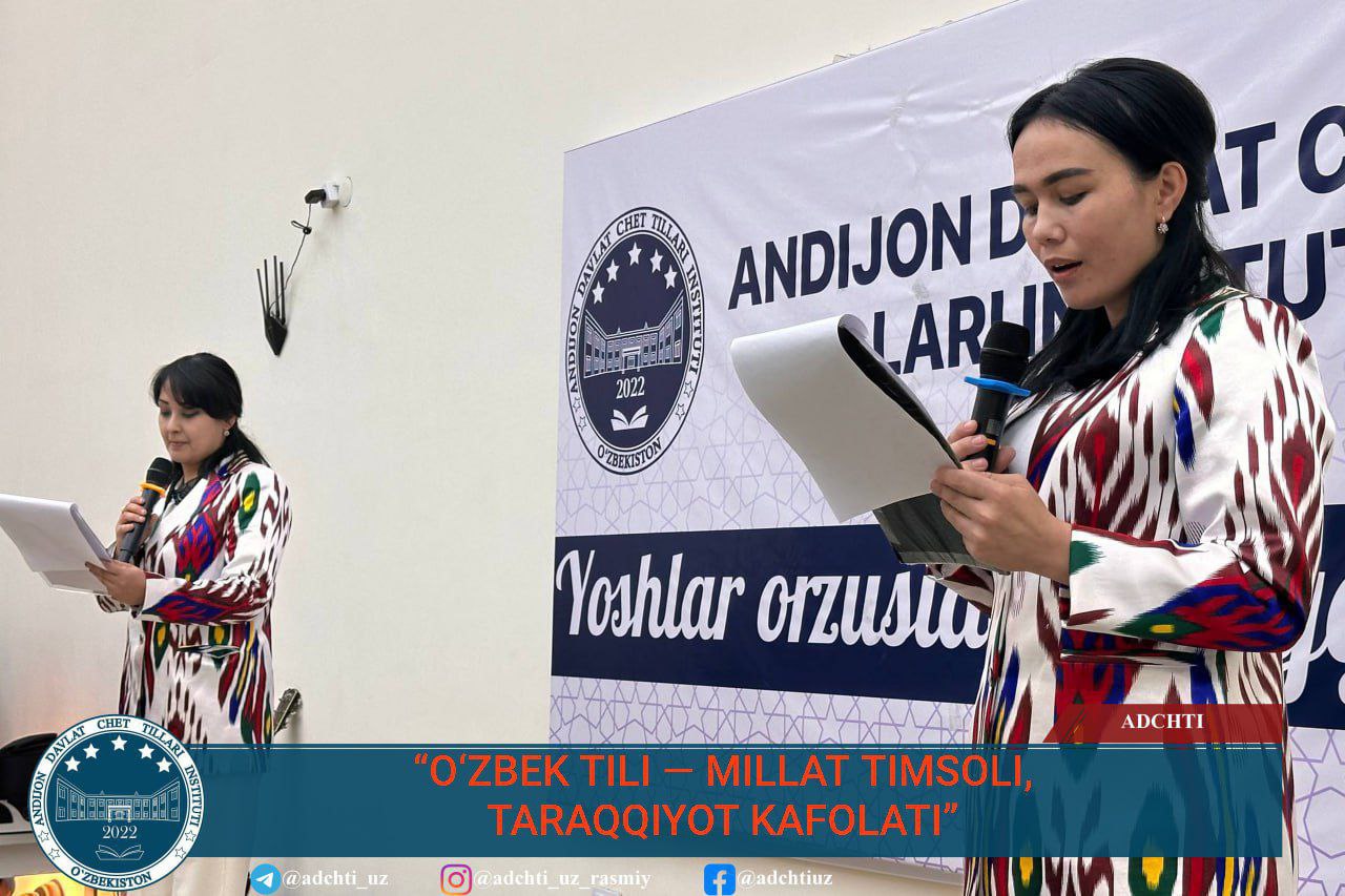 21-oktabr — O‘zbekiston Respublikasida O‘zbek tiliga davlat tili maqomi berilgan kun munosabati bilan Andijon davlat chet tillari instituti Roman-german va slavyan tillari fakulteti Umumiy va qiyosiy tilshunoslik kafedrasi tomonidan “O‘zbek tili — millat timsoli, taraqqiyot kafolati” shiori ostida madaniy-ma’rifiy tadbir tashkil etildi.