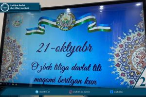 21-oktabr — O‘zbekiston Respublikasida O‘zbek tiliga davlat tili maqomi berilgan kun munosabati bilan Andijon davlat chet tillari instituti Roman-german va slavyan tillari fakulteti Umumiy va qiyosiy tilshunoslik kafedrasi tomonidan “O‘zbek tili — millat timsoli, taraqqiyot kafolati” shiori ostida madaniy-ma’rifiy tadbir tashkil etildi.