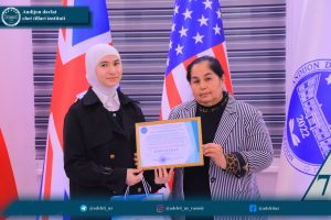 2-o‘rin — Abdumannobova Zahro Sharibjon qizi, Ingliz tili va adabiyoti fakulteti 2-bosqich talabasi;