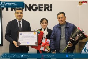 3. Maftuna Xajibayeva — Andijon Yoshlar Texnoparkida tashkil etilgan “InnoX” biznes-inkubator va akselerator dasturining 7-mavsumi yakunida tashkil qilingan tanlovda 1-oʻrin sohibasi (1 000 000 soʻm moddiy ragʻbatlantirish. Ilmiy rahbari: Ahadjon Ataboyev);