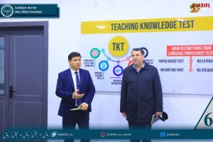 Andijon davlat chet tillari institutida Britaniya konsulligi vakillari — O‘zbekistonda imtihon faoliyatini rivojlantirish bo‘yicha rahbar G‘afur Tajiboyev hamda hamkorlar bilan ishlash bo‘yicha menejer Amirsaid Sadiqovlar bilan uchrashuv bo‘lib o‘tdi. Mehmonlarni institutning Ilmiy ishlar va innovatsiyalar boʻyicha prorektori M.Kurbanov boshchiligidagi mas’ullar kutib oldilar.