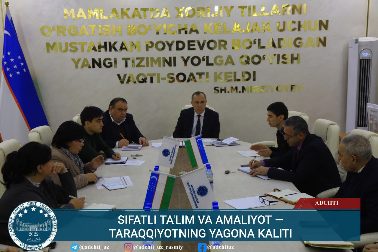 Andijon davlat chet tillari institutida O‘quv-uslubiy boshqarma boshlig‘i K.Karimov raisligida kengaytirilgan ishchi yig‘ilish bo‘lib o‘tdi. Unda fakultet dekanlari va ularning o‘rinbosarlari, kafedra mudirlari hamda Xalqaro hamkorlik bo‘limi mas’ullari ishtirok etdilar.