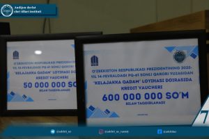 O.Tojiddinovaga (Ingliz tili va adabiyoti fakulteti 4-bosqich talabasi) — 50 million so‘m miqdorida imtiyozli kredit mablag‘lari ajratildi.