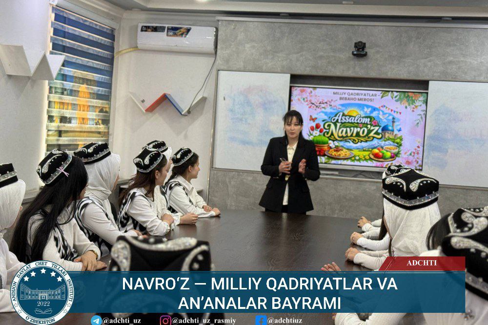 ​Andijon davlat chet tillari institutida bahor nafasi va Navro‘z ayyomi munosabati bilan talaba-yoshlarning milliy o‘zlikni anglash tuyg‘ularini yuksaltirishga qaratilgan ma’rifiy uchrashuvlar davom etmoqda.