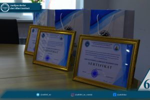 G‘oliblarga institutning ilmiy ishlar va innovatsiyalar bo‘yicha prorektori M.A.Kurbanov tomonidan maxsus sertifikatlar va esdalik sovg‘alari topshirildi.