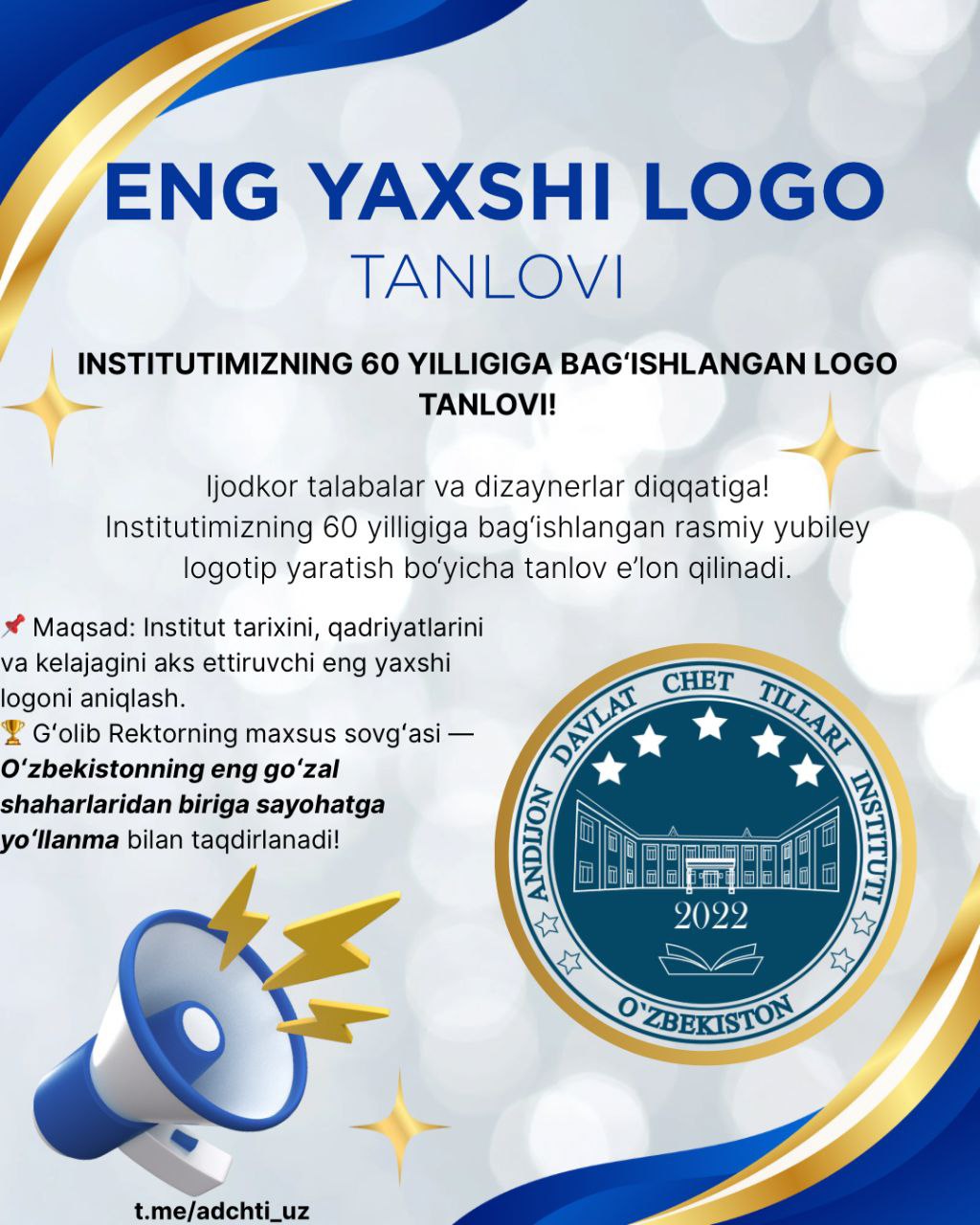 INSTITUTNING 60 YILLIK LOGOTIPI UCHUN TANLOV E’LON QILINADI!