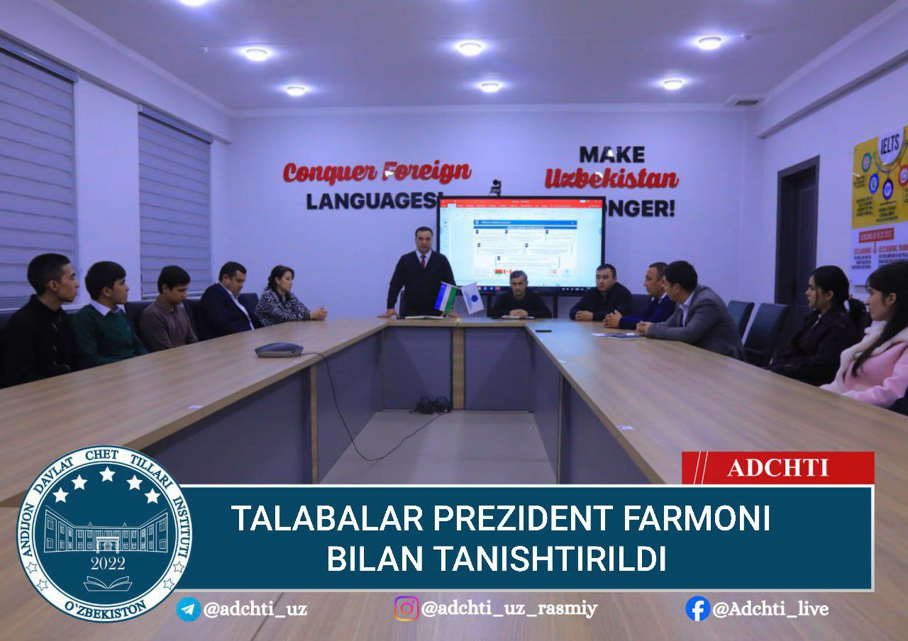 Andijon davlat chet tillari institutida PF–207-sonli Farmon ijrosiga bag‘ishlangan profilaktik yig‘ilish o‘tkazildi