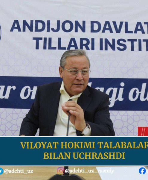 Вилоят ҳокими Шуҳратбек Абдураҳмонов Андижон давлат чет тиллари институтига ташриф буюриб, талаба-ёшлар билан очиқ мулоқот ўтказди.