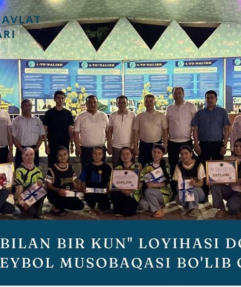 “TALABA BILAN BIR KUN LOYIHASI” DOIRASIDA VOLLEYBOL MUSOBAQASI BOʻLIB OʻTDI