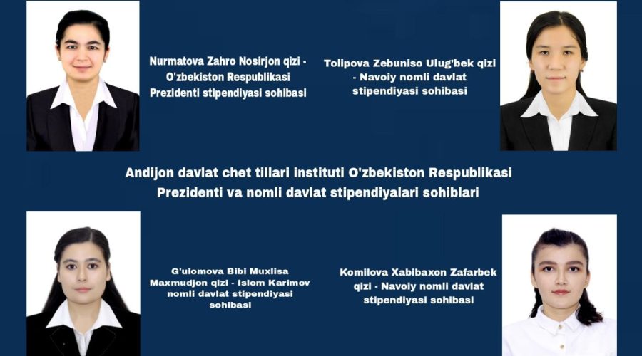 ANDIJON DAVLAT CHET TILLARI INSTITUTINING 4 NAFAR TALABALARI O’ZBEKISTON RESPUBLIKASI PREZIDENTI VA NOMLI DAVLAT STIPENDIYALARI SOHIBI BO’LDILAR