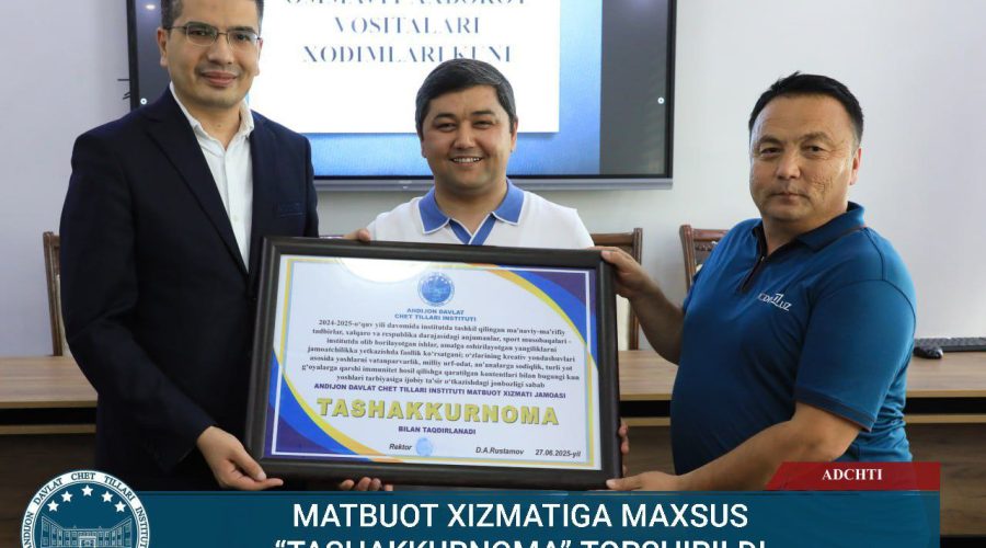 INSTITUT MATBUOT XIZMATIGA MAXSUS “TASHAKKURNOMA” TOPSHIRILDI